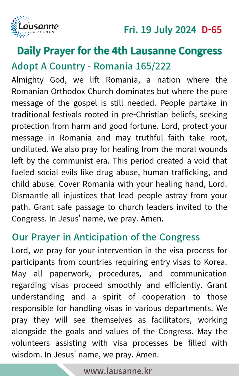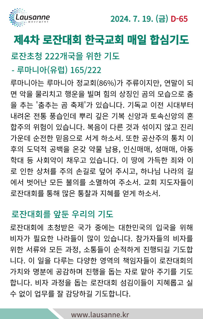 제4차 로잔대회 한국교회 매일합심기도문 7월 19일 작성자 관리자 작성일 2024-07-18 21:49 조회 348 좋아요 0 싫어요 0 인쇄 « 7월 18일 7월 20일 » 목록보기