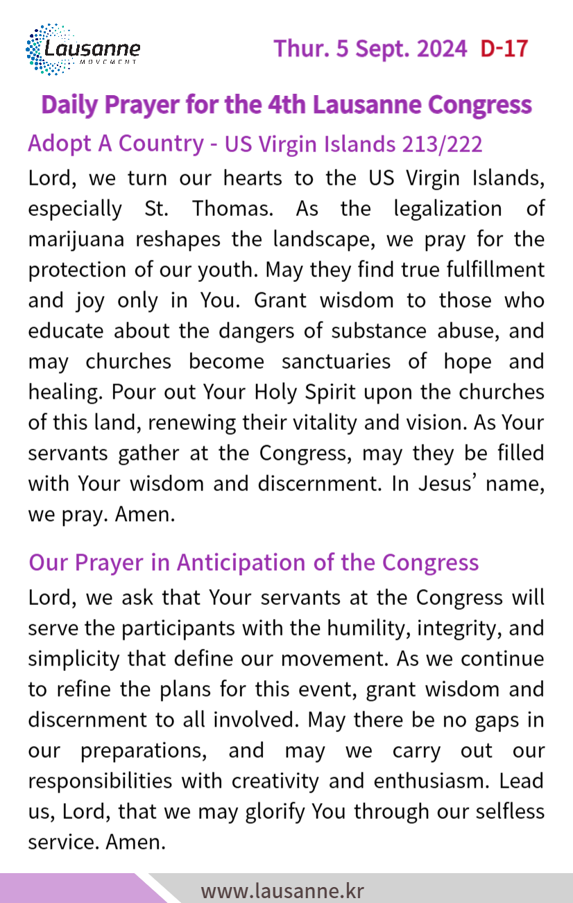 제4차 로잔대회 한국교회 매일합심기도문