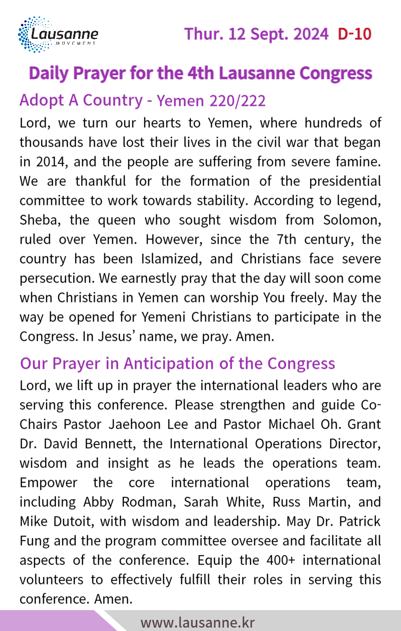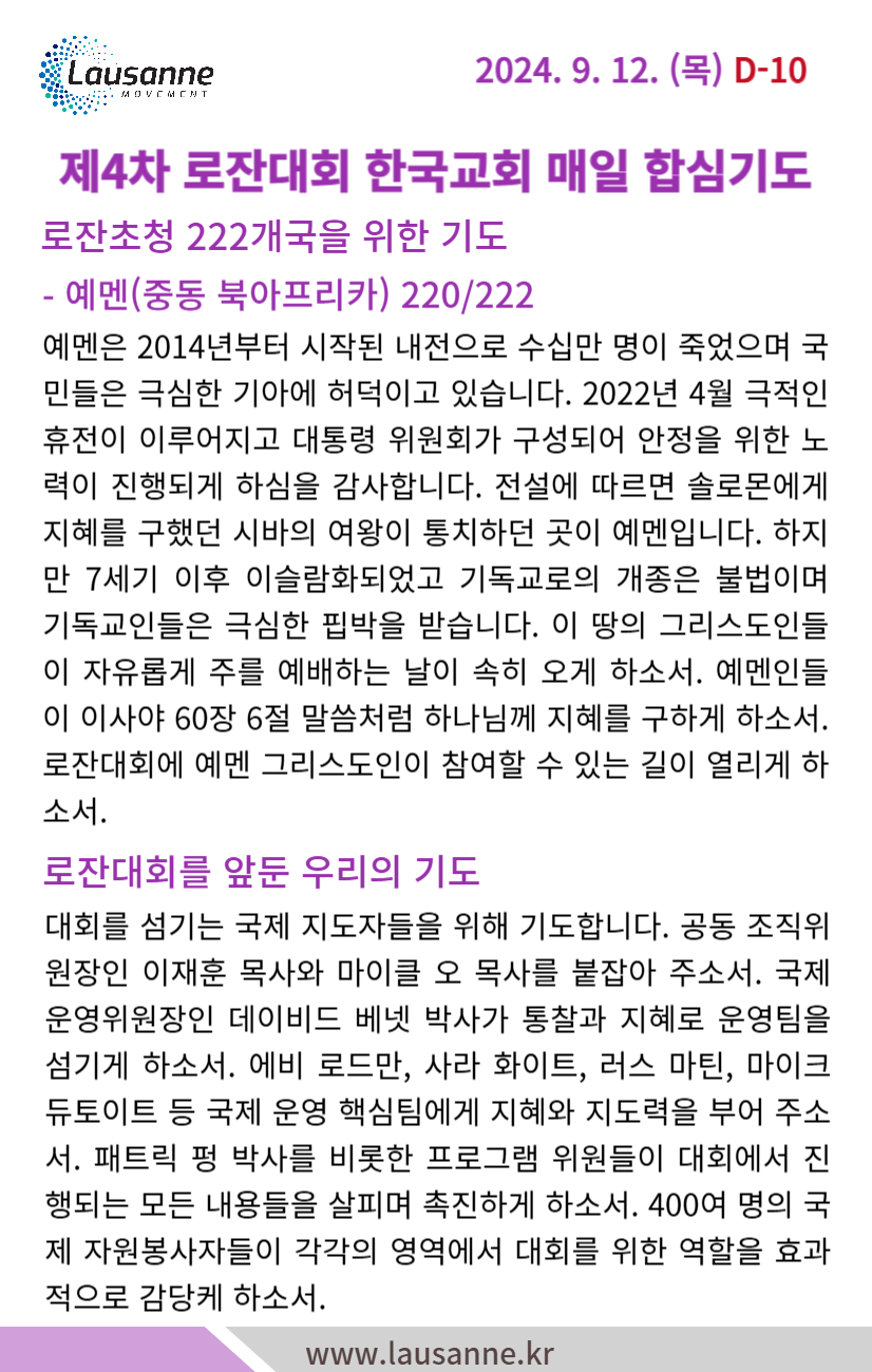 제4차 로잔대회 한국교회 매일합심기도문 9월 12일 작성자 관리자 작성일 2024-09-11 22:11 조회 487 좋아요 0 싫어요 0 인쇄 « 9월 11일 9월 13일 » 목록보기