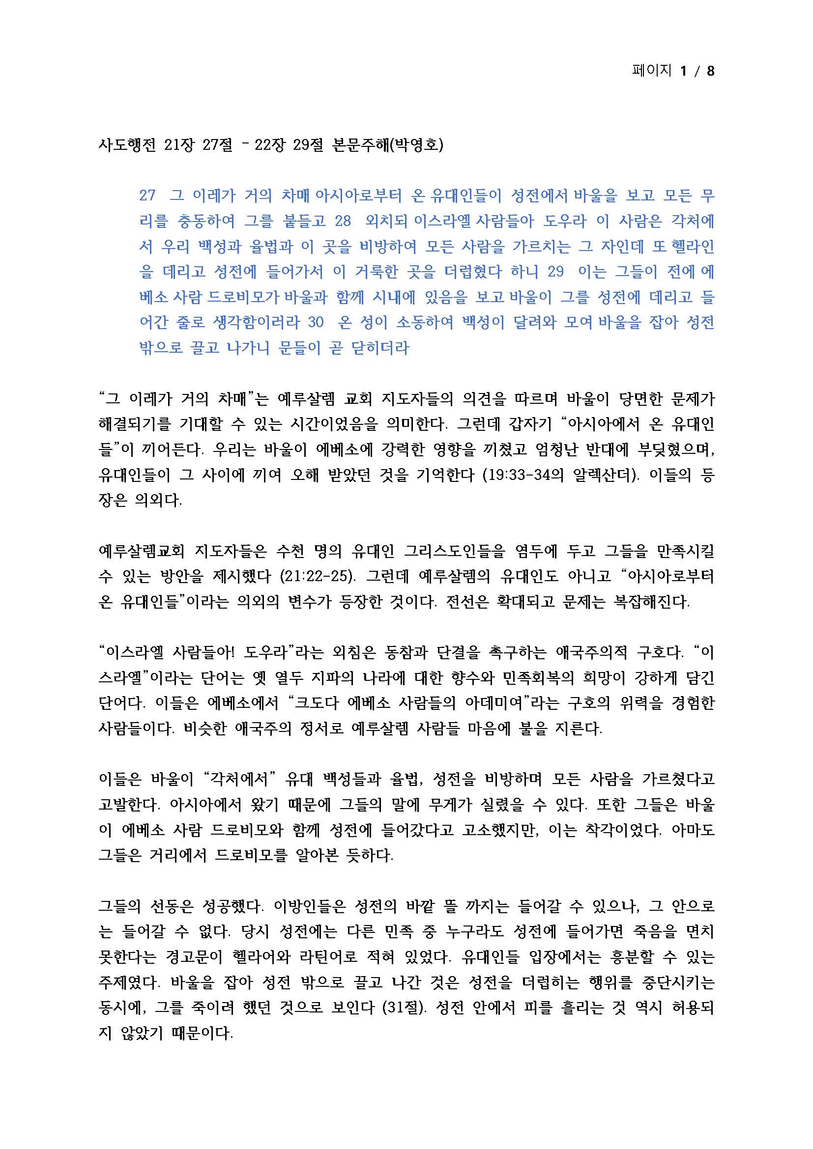 주해글 말씀네트워크 주해글 34주차 본문주해 - 행21장 27절-22장 29절(11/3) 작성자 말씀네트워크 작성일 2024-11-27 14:38 조회 49 인쇄 34주차-본문주해-행21장-27절-22장-29절11.3.pdf « 33주차 본문주해 - 행21장 1-26절(10/27) 35주차 본문주해 - 행22장 30절-23장 35절(11/10) » 목록보기